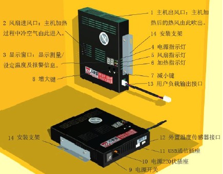 ③故障監測和報警功能:加熱器可以對內部的風(fēng)扇、加熱器、溫度傳感器進(jìn)行自動(dòng)監測,如發(fā)現故障能自動(dòng)停止工作并告警,提醒用戶(hù)檢查處理。